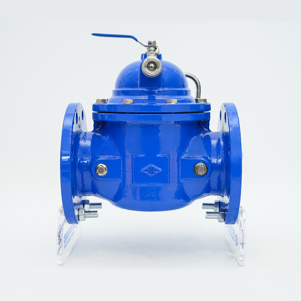 صمام التحكم الهيدروليكي هو صمام يتم التحكم فيه عن طريق ضغط الماء. ويتكون من الصمام الرئيسي والقناة الملحقة به، والصمام الطيار، وصمام الإبرة، والصمام الكروي، ومقياس الضغط. اعتمادًا على الغرض والوظيفة ومكان الاستخدام، يمكن أن تتطور إلى صمامات تعويم للتحكم عن بعد، وصمامات تخفيض الضغط، وصمامات فحص بطيئة الإغلاق، وصمامات التحكم في التدفق، وصمامات تخفيف الضغط، وصمامات التحكم الكهربائية الهيدروليكية، وما إلى ذلك. وتنقسم صمامات التحكم الهيدروليكية إلى نوع الحجاب الحاجز ونوع المكبس. مبادئ عملهم هي نفسها. يتم تشغيلها بواسطة فرق الضغط SP بين المنبع والمصب ويتم التحكم فيها بواسطة الصمام الدليلي بحيث يعمل الحجاب الحاجز (المكبس) هيدروليكيًا بشكل تفاضلي ويتم ضبطه تلقائيًا بالكامل بواسطة المكونات الهيدروليكية. قرص الصمام الرئيسي مفتوح بالكامل أو مغلق بالكامل أو في حالة منظمة. عندما يتم تفريغ ماء الضغط الذي يدخل غرفة التحكم فوق الحجاب الحاجز (المكبس) إلى الغلاف الجوي أو منطقة الضغط المنخفض في اتجاه مجرى النهر، تكون قيمة الضغط المؤثرة على الجزء السفلي من قرص الصمام وتحت الحجاب الحاجز أكبر من قيمة الضغط أعلاه، لذلك يتم دفع قرص الصمام الرئيسي إلى وضع الفتح الكامل؛ عندما لا يمكن تفريغ ضغط الماء الذي يدخل إلى غرفة التحكم فوق الحجاب الحاجز (المكبس) إلى الغلاف الجوي أو إلى منطقة الضغط المنخفض في اتجاه مجرى النهر، فإن القوة المؤثرة على مكبس الحجاب الحاجز (المكبس). قيمة الضغط أعلاه أكبر من قيمة الضغط أدناه، لذلك سيتم الضغط على قرص الصمام الرئيسي إلى وضع الإغلاق الكامل. عندما تكون قيمة الضغط في غرفة التحكم فوق الحجاب الحاجز (المكبس) بين ضغط المدخل وضغط المخرج، يكون قرص الصمام الرئيسي في حالة ضبط، ويعتمد موضع ضبطه على تأثير التحكم في الوصلة لصمام الإبرة والصمام الطيار القابل للتعديل في نظام القناة. يمكن للصمام الطيار القابل للتعديل أن يفتح أو يغلق منفذ الصمام الصغير الخاص به من خلال ضغط مخرج التيار ويتغير معه، وبالتالي تغيير الضغط الذي يتم التحكم فيه فوق الحجاب الحاجز (المكبس) والتحكم في موضع ضبط قرص الصمام الرئيسي.